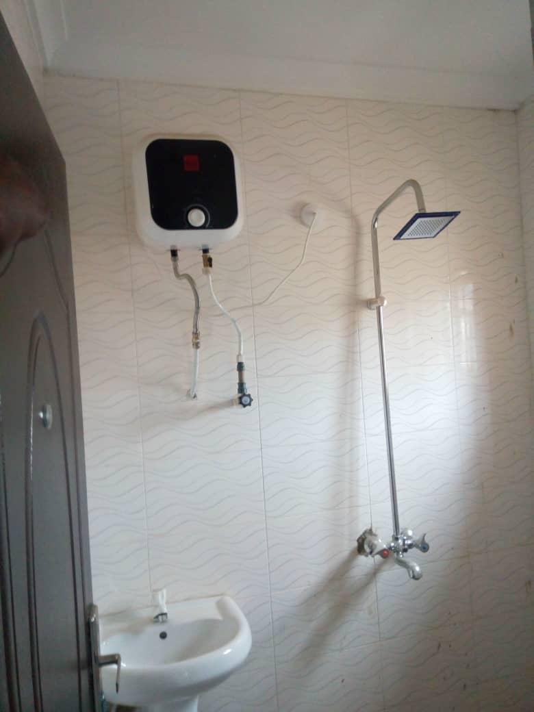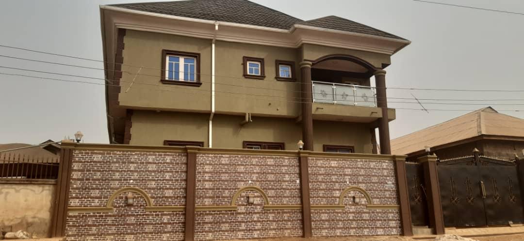 A tastefully finished 3nos 2bedroom, all rooms ensuite.The ceiling is finished with POP while the floor is further finished with ceramic tiles .The lining room are lighted with wall brackets. A running borehole is also available. Access into the premises is vide 2nos vehicular metal gates.