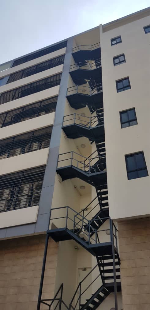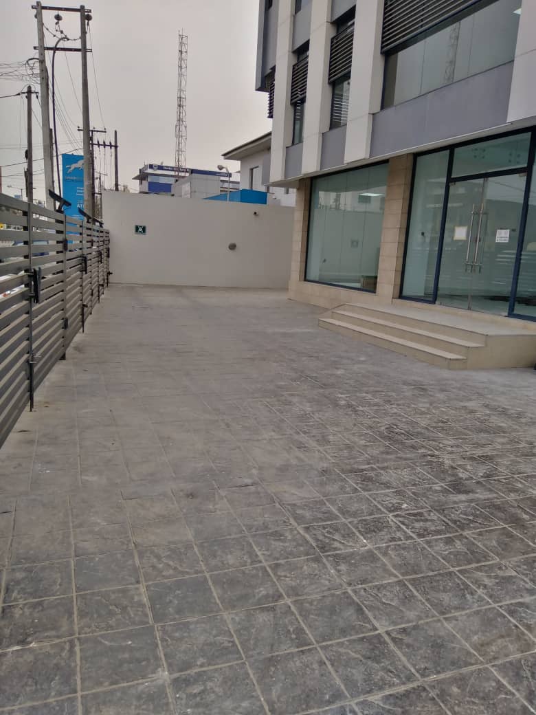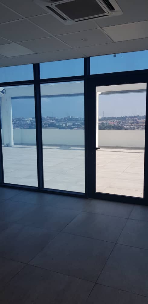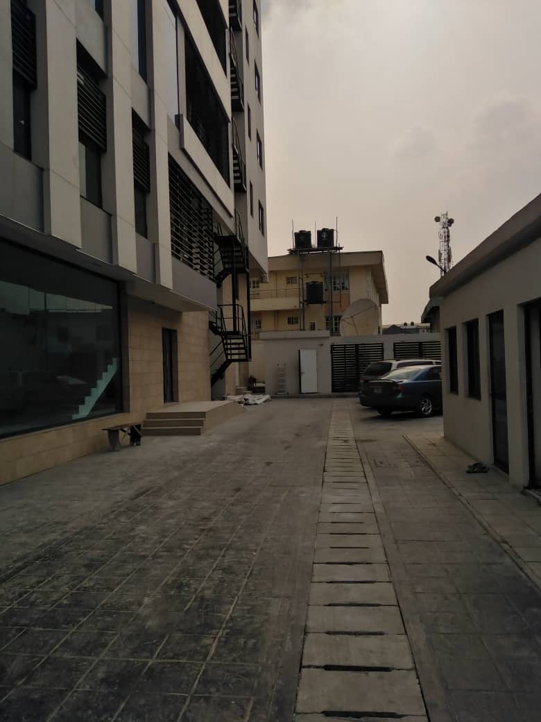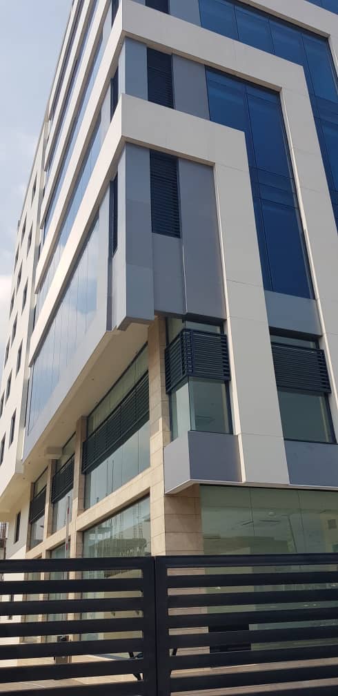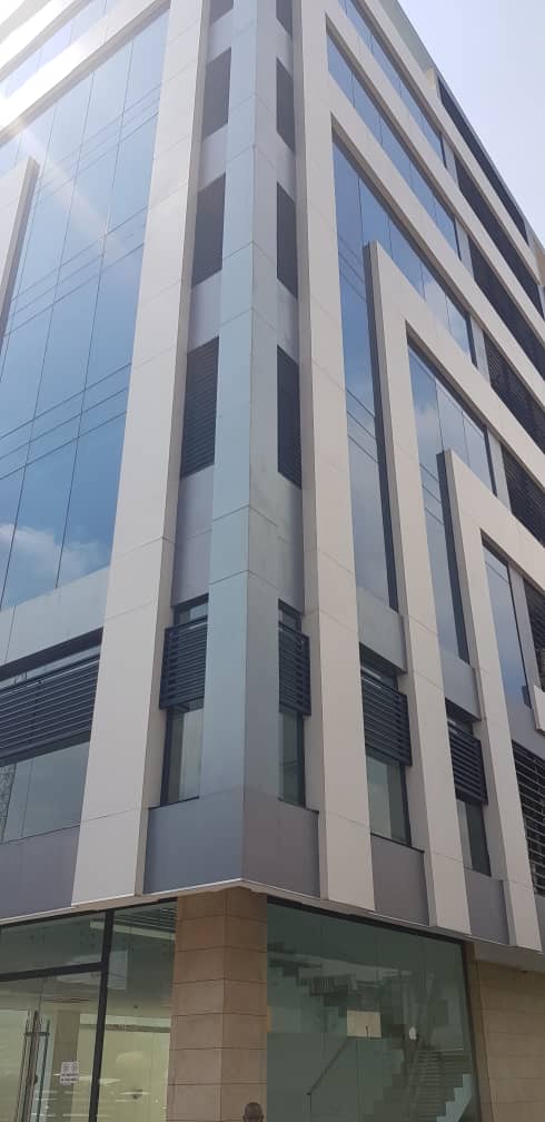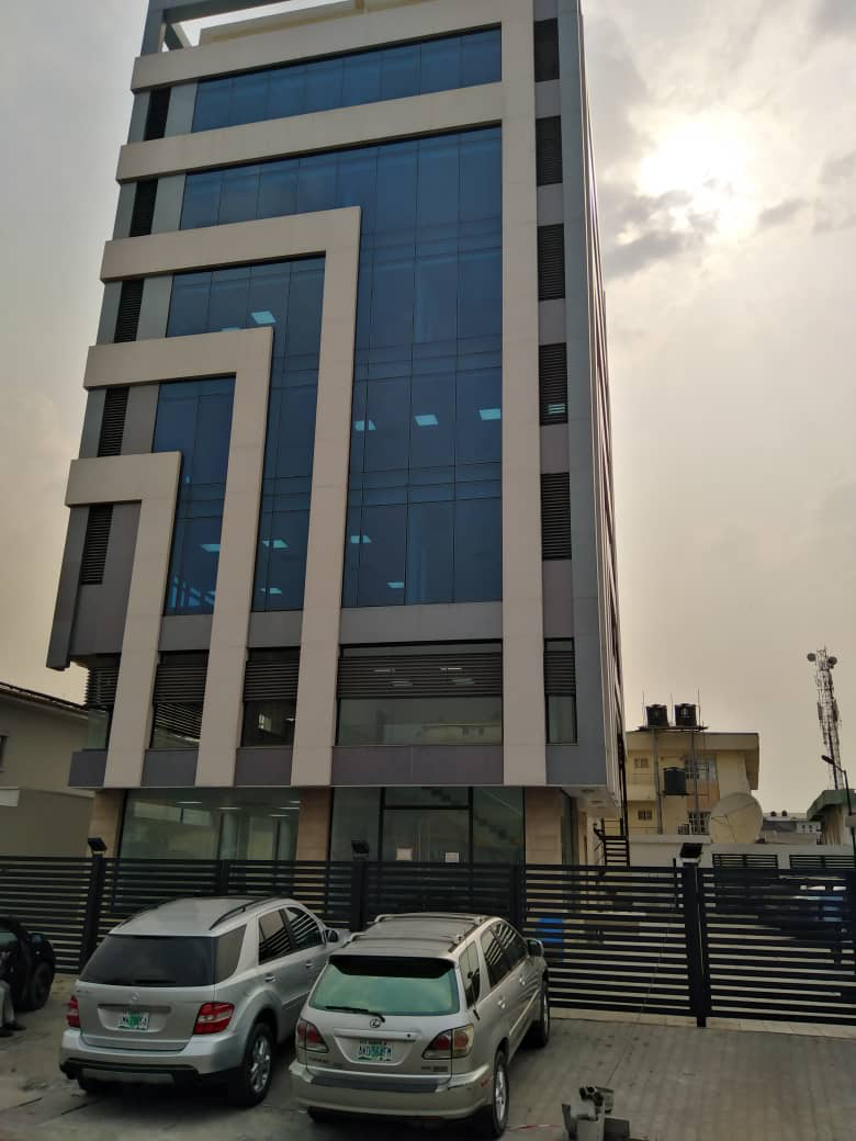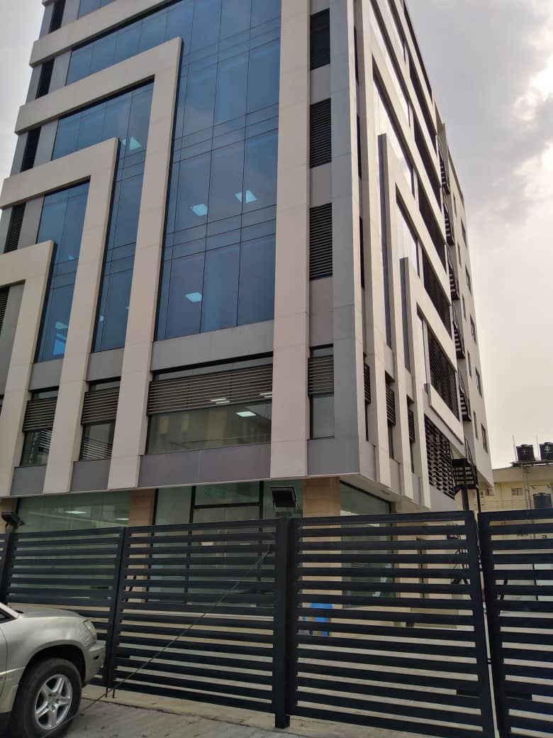 Grade A serviced office space on eight (8) floors with 500sqm space each on ground floor and first floor and 350sqm each on upper floors’ It has underground basement parking of 700 sqm. The property is a fully serviced office building with facilities which include: Dedicated power transformer with back-up generators, passenger lift, 24-hour security, air conditioning units, internet facility, CCTV and access control system, smoke detector, fire alarm system, industrial borehole with water treatment plant and sewage treatment plant.
